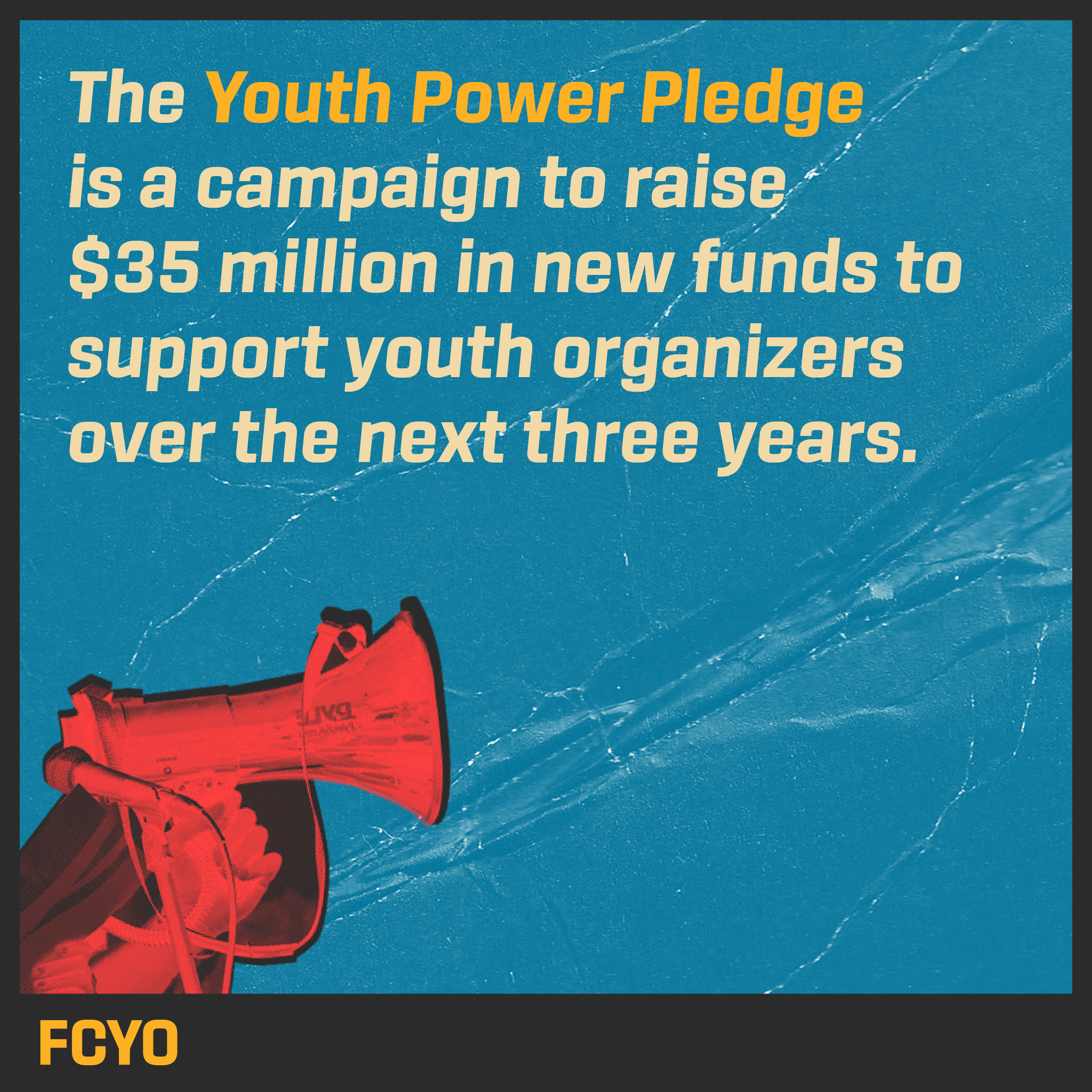 Early funders who have contributed to this campaign include: the Andrus Family Fund, The Annie E. Casey Foundation, The California Endowment, Chan Zuckerberg Initiative, The Cricket Island Foundation, The David and Lucile Packard Foundation, The Edward W. Hazen Foundation, Ford Foundation, Hill-Snowdon Foundation, Jacob & Valeria Langeloth Foundation, The Perrin Family Foundation, Raikes Foundation, Resourcing Justice Fund, Silver Giving Foundation, W. Clement & Jessie V. Stone Foundation, along with The JPB Foundation who have aligned funding to FCYO in support of youth climate justice work. The Youth Power Pledge has already raised $20 million in new resources for the field of youth organizing.
